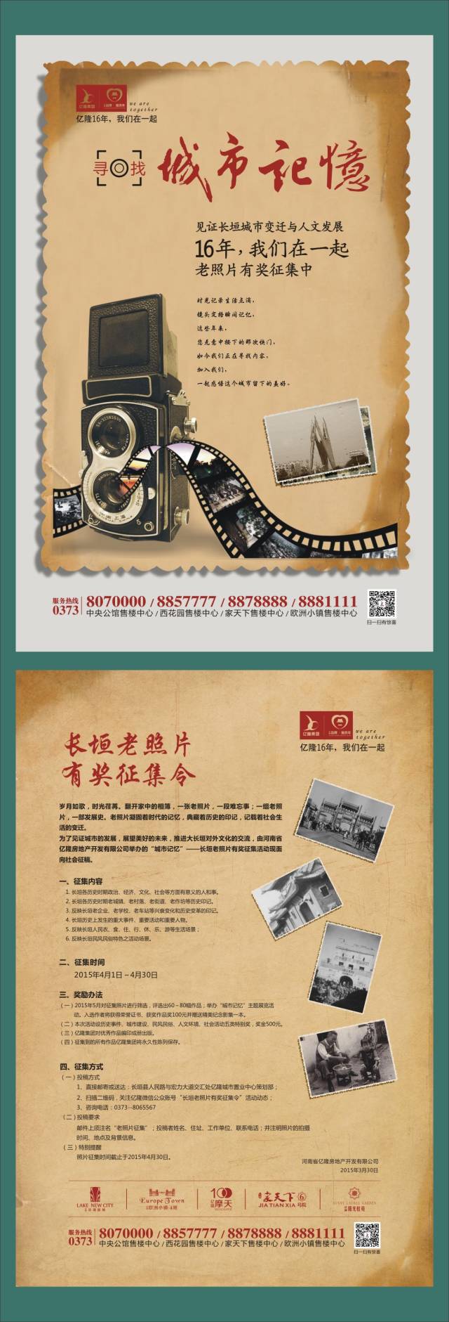 为了见证城市的发展,展望美好的未来,推进大长垣对外文化的交流,由河南省亿隆房地产开发有限公司举办的“城市记忆”——长垣老照片有奖征集活动现面向社会征稿。